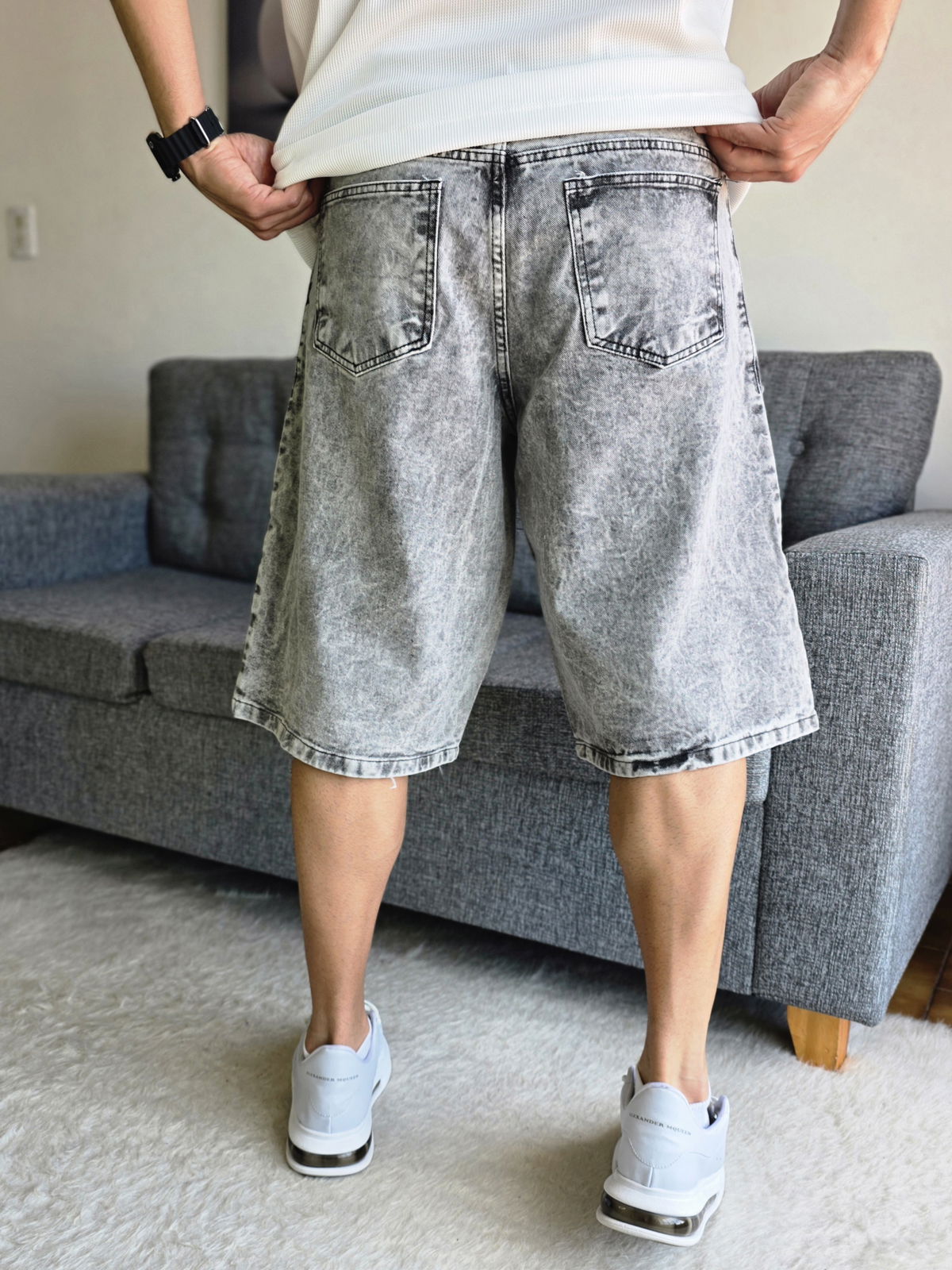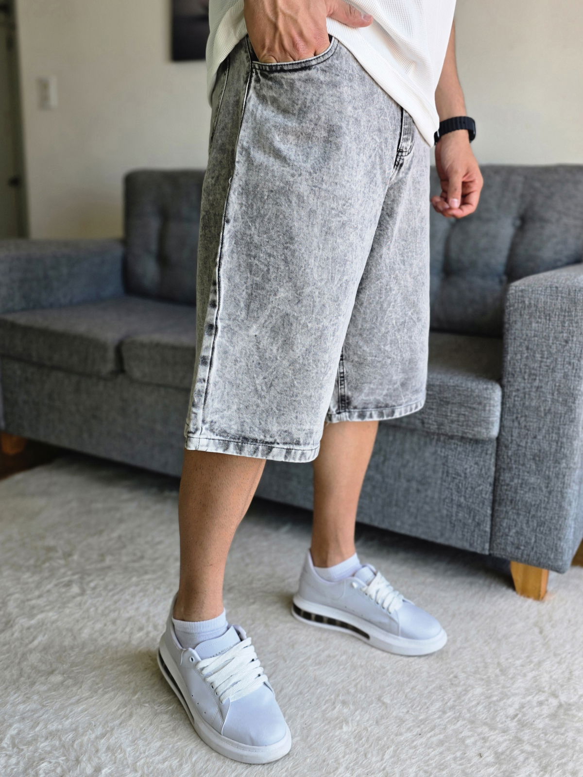 Bermuda jean baggy gris